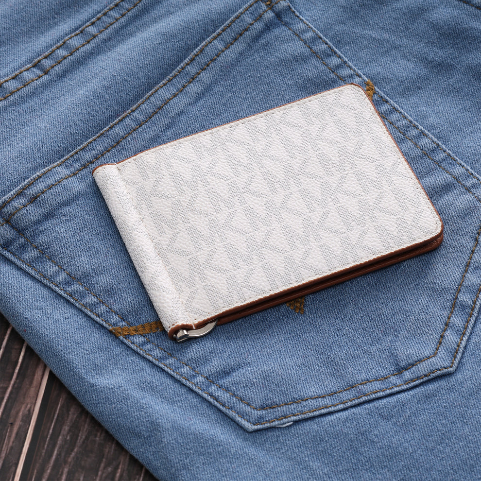 A modern twist on timeless sophistication. The Michael Kors Jet Set Wallet features the brand’s signature logo print in a clean chalk-white tone contrasted with rich tan interiors. Designed for the man who appreciates minimalism with a touch of luxury, it combines smooth leather craftsmanship with a sleek money clip and multiple card slots for everyday functionality.